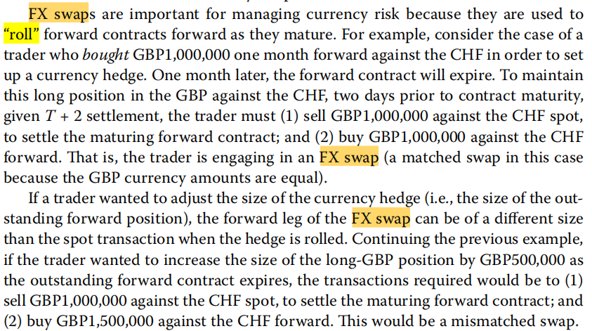 同学你好,roll over(远期合约的展期) 应该FX swap的知识。远期合约结束后,再签订新的远期合约。
