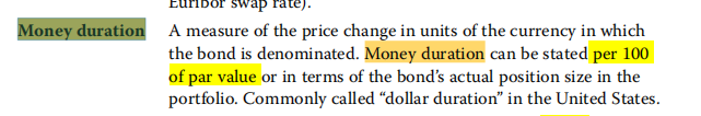 同学你好,表格里应该是写错了,不是Macaulay duration 而是money duration(可参看原版书的题目);money duration=annual modified duration *full price of bond 。