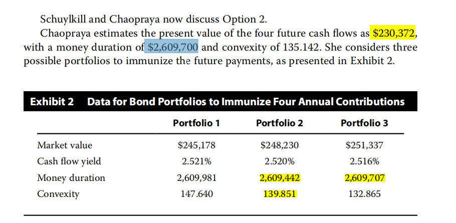 老师说money duration=macaulay duration*value。我通过计算portfolio1和2的money duration发现结果比题干的$2,609,700大很多。这是为什么?