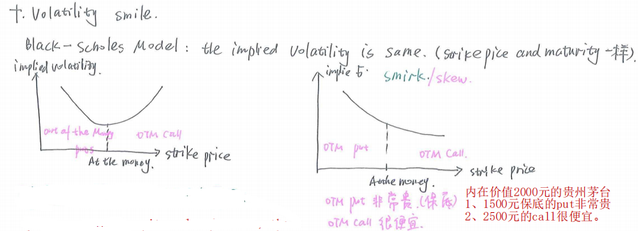 同学你好,1、The 80% moneyness option is a put with strike (X) equal to 80% of the current underlying price (S); thus X/S = 80%. 所以80%put和120% call的价格在图中是相对 strike(X)对称的。2、在对称的价格上在图中看到 OTM put的波动率高于OTM call的波动率,因此低买高卖,买OTM call 卖OTM put。