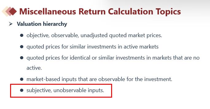 subjective, unobservable inputs是排在最后的,见下图讲义。