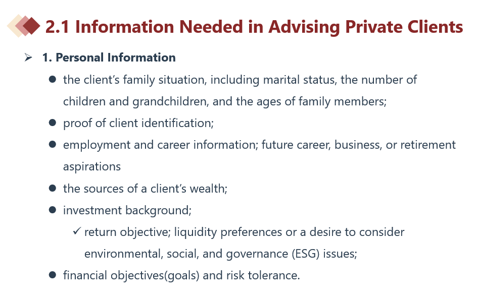 同学你好,要看教材是如何规定personal information。你的第一点可以拿分,写到了financial goal,第二点不得分,tax是不属于personal information的。第三点可以算作是investment background的一个小点
