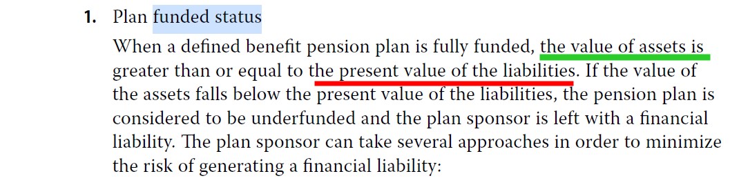 对于funded status,一般考虑折现未来养老金的负债求现值,而资产是用当前市场价值(不折现)