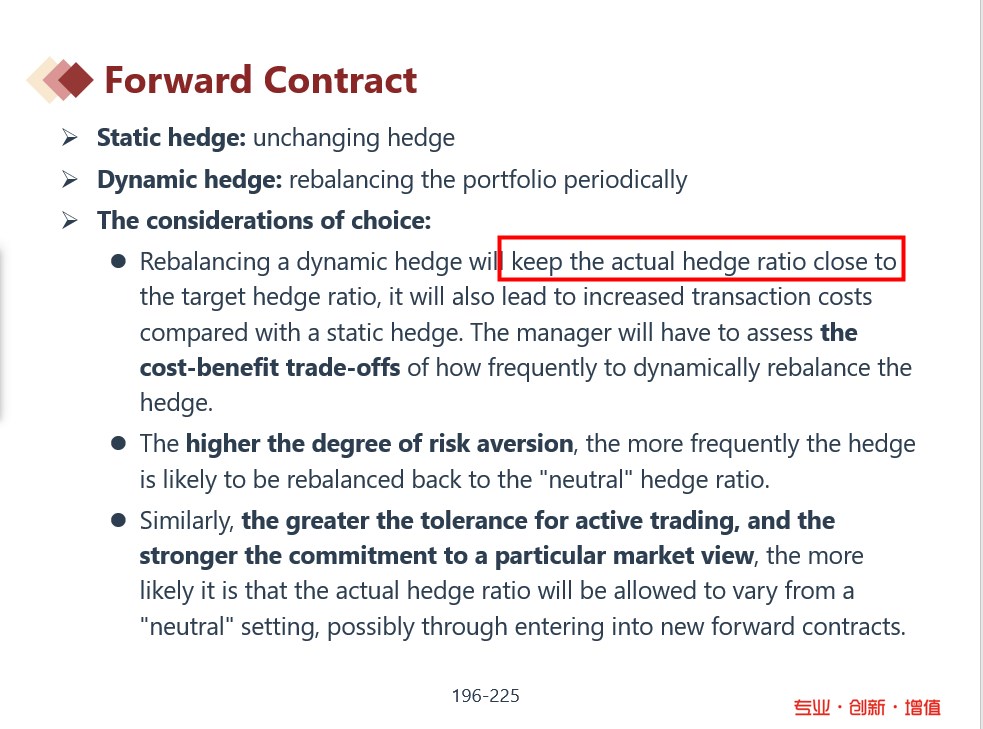 同学,上午好。这个知识点是资产价值会时刻变动,所以无法完全对冲汇率的风险敞口,最多只能保持接近目标对冲比率。超过目标对冲比率就是overhedge,低于目标对冲比率就是underhedge。