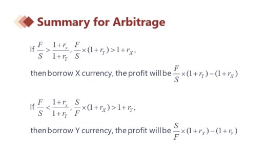 但如果是carry trade(借低利率投资高利率)时,不会使用forward来签订合约(而是等到期,直接在spot市场换汇),因为一旦使用forward,那么投资外币再换回本币,收益就是国内的无风险收益(covered IRP一定会成立)。