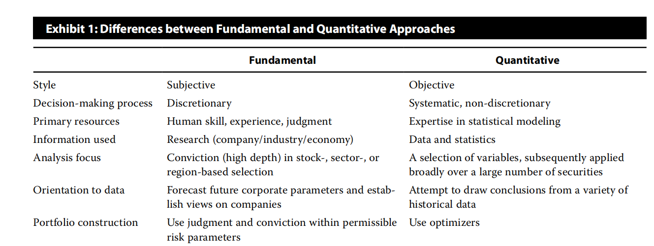 同学,你好top down:自上而下,侧重研究宏观经济和行业systematic:系统的,有规则的,一般是quantitative方法中的决策流程。基本面方法与量化方法的对比如下图,请看~祝你学习顺利~