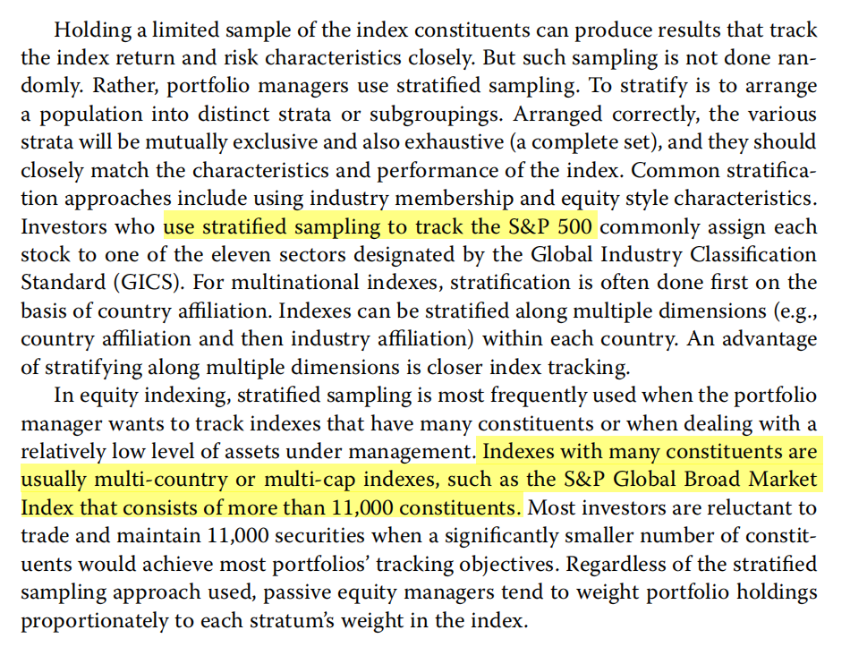 同学,你好原版书并没有给我们一个具体的数字,但是给了个例子作为参考:拥有许多成分股的指数,通常是多国或多股股指数,如由超过1.1万股组成的标准普尔全球大盘指数。如下图highligh部分。祝你学习进步~