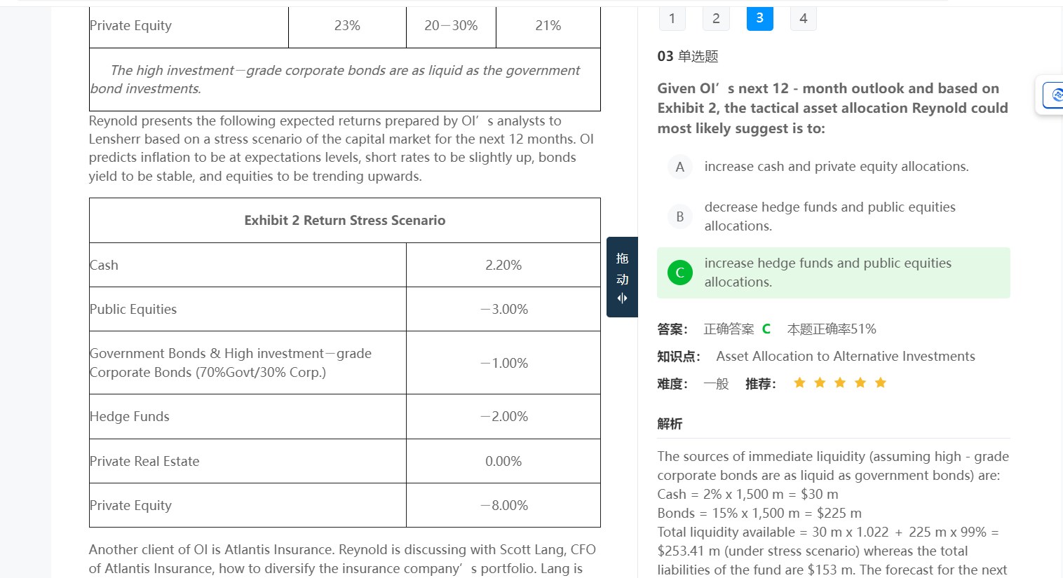 第三题的判断应该基于绿色划线内容,对股票持有看涨的态度