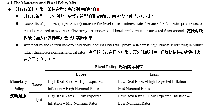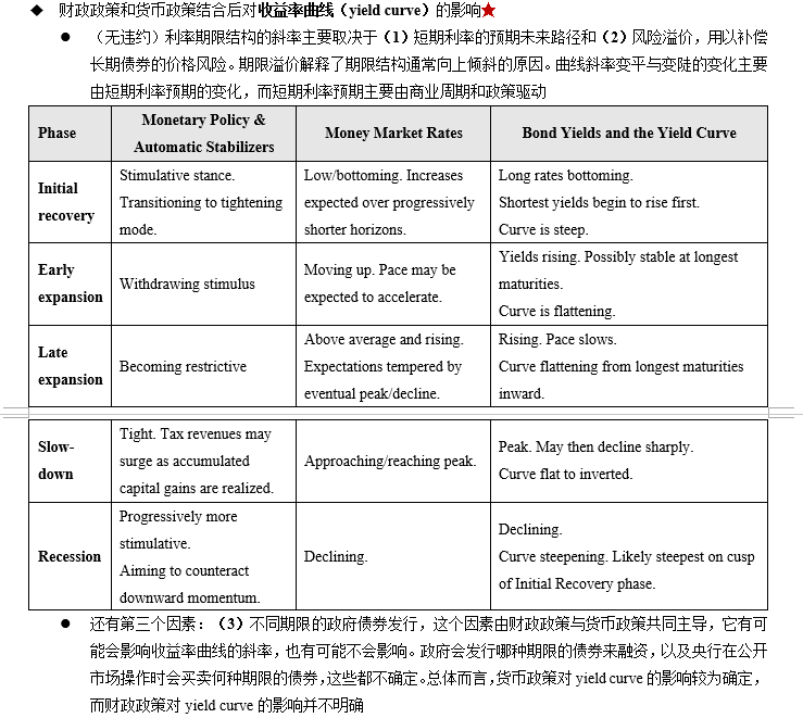 同学你好,可以参考下图。在分析政策对名义利率的影响时,宽松财政政策会影响提高实际利率,这里并没有区分长短期。而在分析政策对yield curve的影响时,货币政策对yield curve的影响较为明确,而财政政策对其影响是不确定的