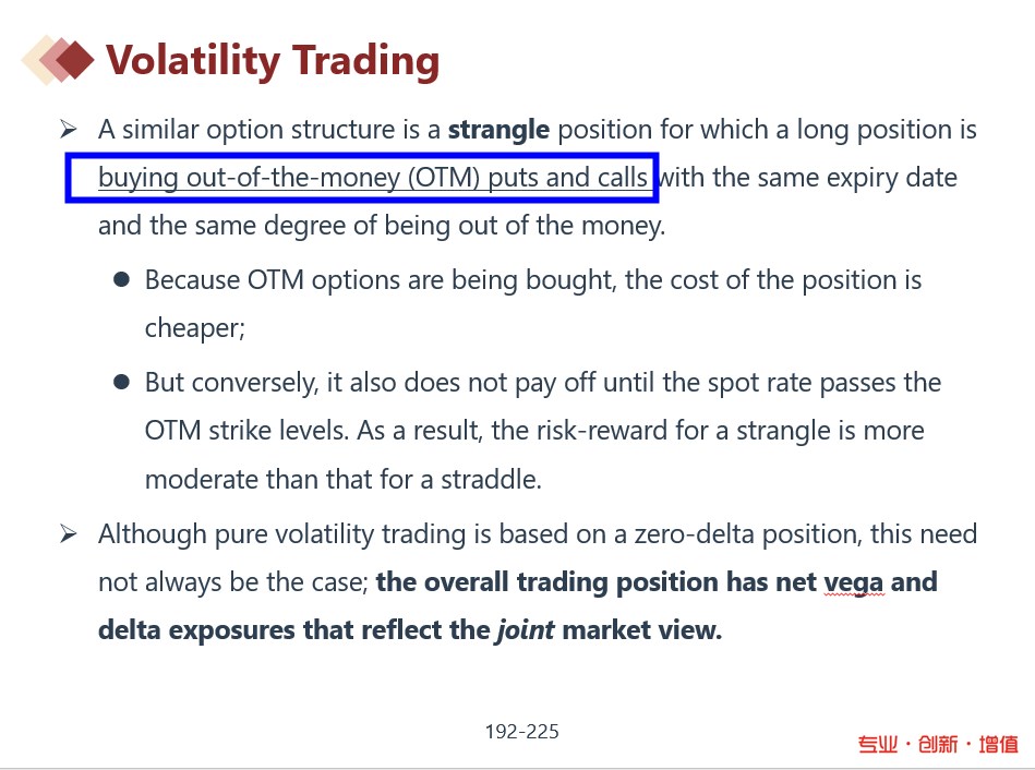 同学,上午好。straddle定义是必须使用ATM option,如果使用OTM option,那么这个就是strangle策略。