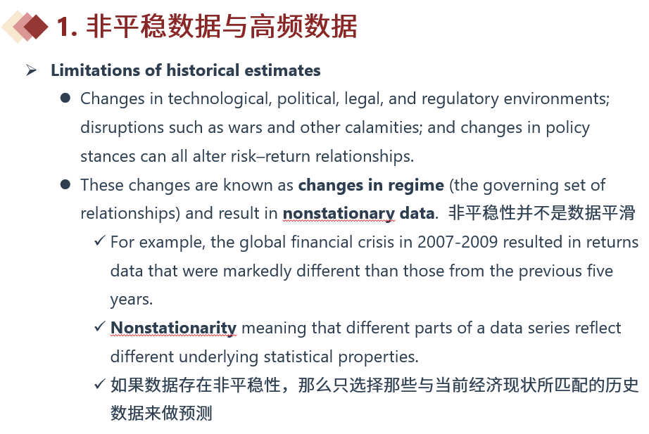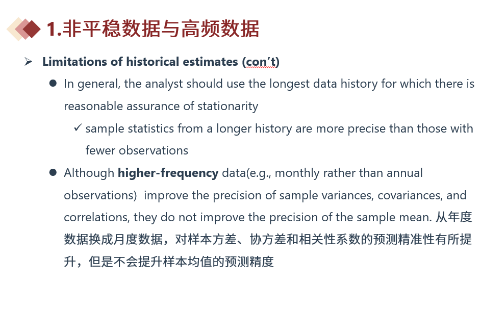 如果这个长期内存在regime change,那就应该选择特定区间的数据,他要符合当前的经济状况才行。但如果没说有regime change,就应该采用长期的数据,也就是文中所说的where possible,如果可以的话就用长期数据,除非题目中说了期间有regime change,那才使用区间数据。