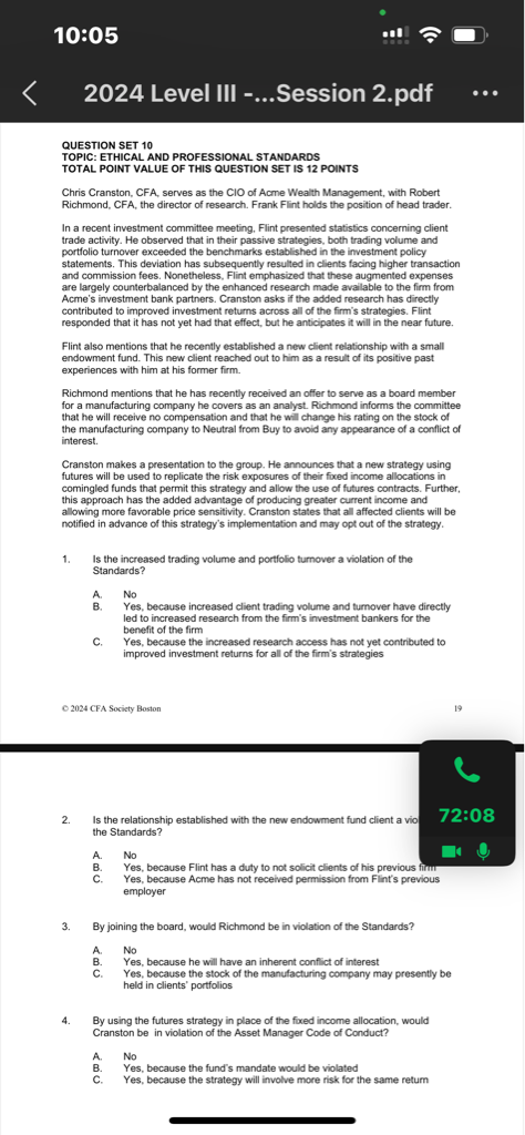 2024 mock A PM case 10 第3问,成为分析公司的BOD这里是违反哪个条款呀?disclose to client和employer不就可以了吗?他也没发表后续的意见了呀