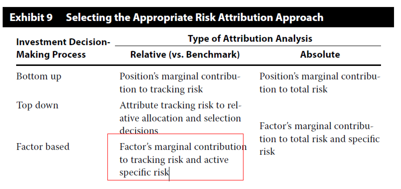 C选项这个表述也不准确,应该是relative bottom的risk attribution应该是Factor’s marginal contribution risk