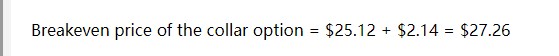 同学,上午好。collar的breakeven point是S0+P0-C0=25.12+2.67-0.53=27.26