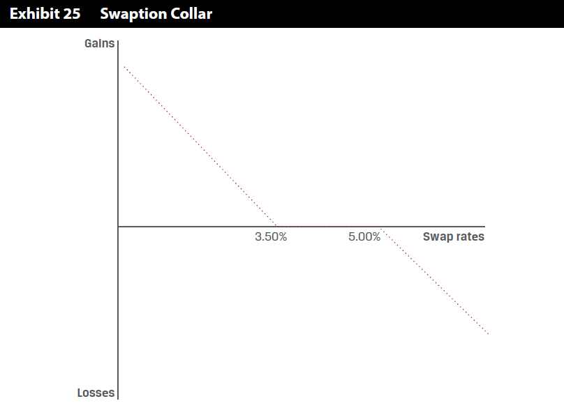 swaption collar是预期利率下降,那么进入一个 receiver swaption(收固定好的strike rate=3.5%,支浮动),所以在利率下跌时更有利,