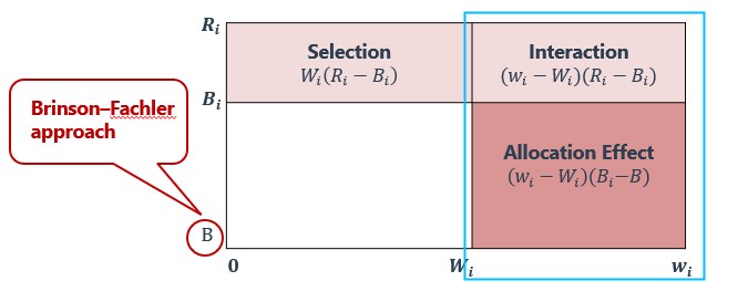 Timmon states that AQI often uses the Brinson model with an interaction term for attribution purposes and asks Richard how the Brinson model incorporates fund manager sector weights and benchmark portfolio sector weights.
