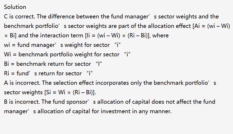 A是不对的,A说的是个股选择,而题目问的是 sector weights板块权重,所以不对应。