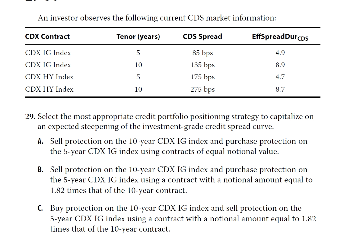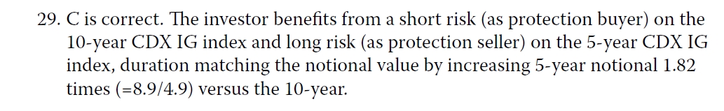 这个题给的是investment-grade credit spread curve变的陡峭,于是要用的是investment grade两个债券,对应duration分别是4.9和8.9