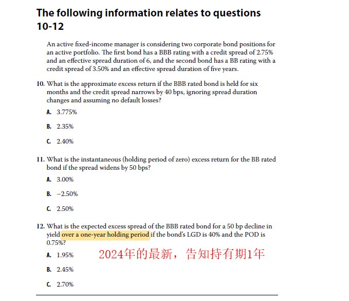 但是,瞬时概念在原版书上一直是模棱两可的,没有一个固定标准,所以最新课后题都换成明确持有期了。题目会说明持有期是多少。例如holding period=0。或者持有期1年。不会说是瞬时,但不给持有期。可以看截图举例。