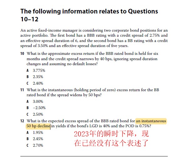 截图中第12问,正确计算答案应该是2.75%×1 – (6 × –0.50%) – (0.75%× 40%×1)=5.45%(协会虽然改题目了,但是又没有改全)