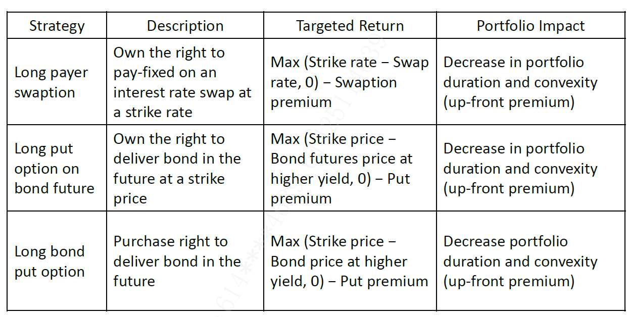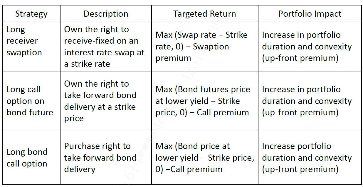 不是。第一张表是列举了增加duration的不同方法,第二张表是列举了减少duration的不同方法。不是针对volatility的策略。