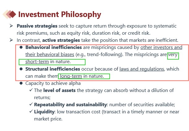 Behavioral inefficiencies是不可持续的 Structural inefficiencies是可持续的 所以投资者会更喜欢后者?这两个可以被纠正吗