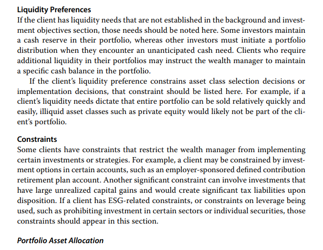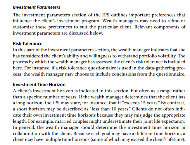 同学你好,IPS中是把liquidity need和time horizon单独分开列示的,所以可以分开写,根据原版书的归类可以看出投资期限和流动性都是属于investment parameter的一部分