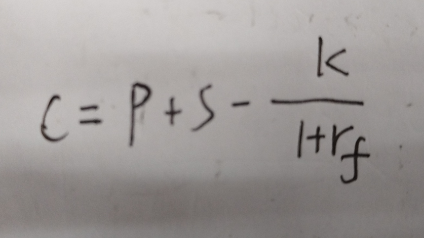 这是用put-call parity推导的。Rf越大,P就越小。Rf越大,C就越大