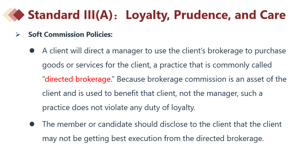 同学你好,在为客户选择broker来下单时,一定要确保best execution或者best price。要是客户指定你去找特定的broker来下单,而你发现这个broker并没做到best price或者best execution时,应该先把此事告知客户,如果客户一意孤行,依旧要求你向这个broker去下单,那就按照客户的要求来为他下单,毕竟这个brokerage account是客户的资产,他有权指定这个钱花在哪个地方。