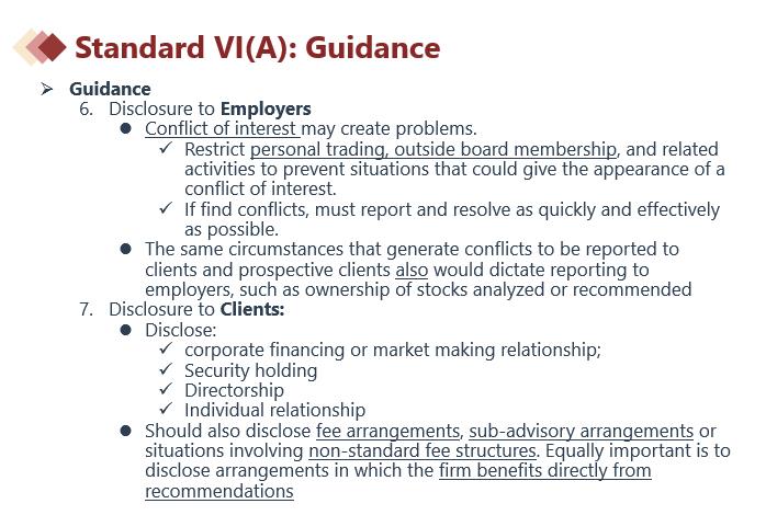 同学你好,所有可能损害独立客观性或干扰对客户、潜在客户和雇主职责的事项都需要披露的,其他的则不需要。通常需要披露的见下图讲义