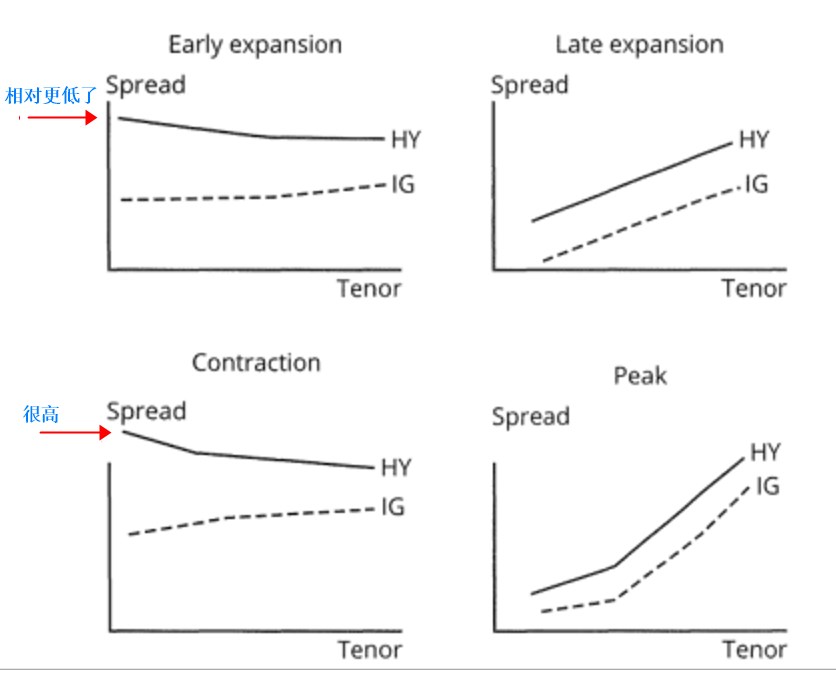 recovery 阶段是inverted的,但是我们是要看变化,recovery阶段,可以大致认为是从contraction到early expensation。所以,虽然是inverted的,但从细节上看,在early expensation阶段,短期的HY的spread是下降的,所以债券价格会上涨。