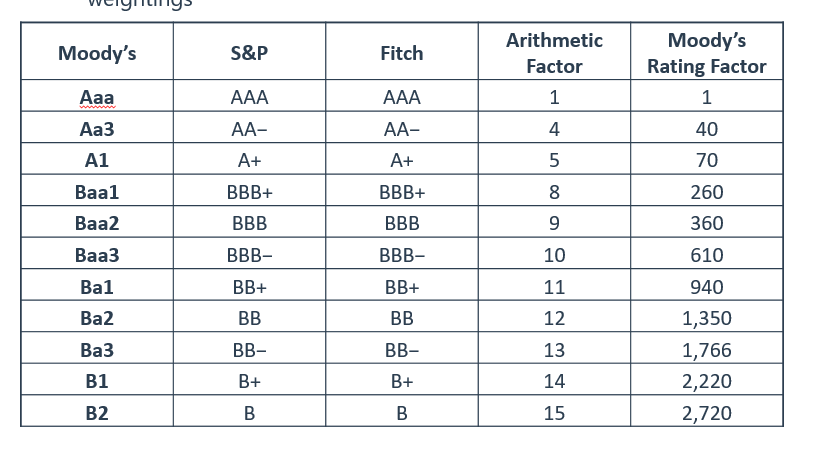 而且以截图1的评级打分为例,就看Arithmetic factor,从Aaa降成Aa3,打分从1变成4,直接增了4倍,但是从B1降级到B2,打分从14变成15,才增加7%。