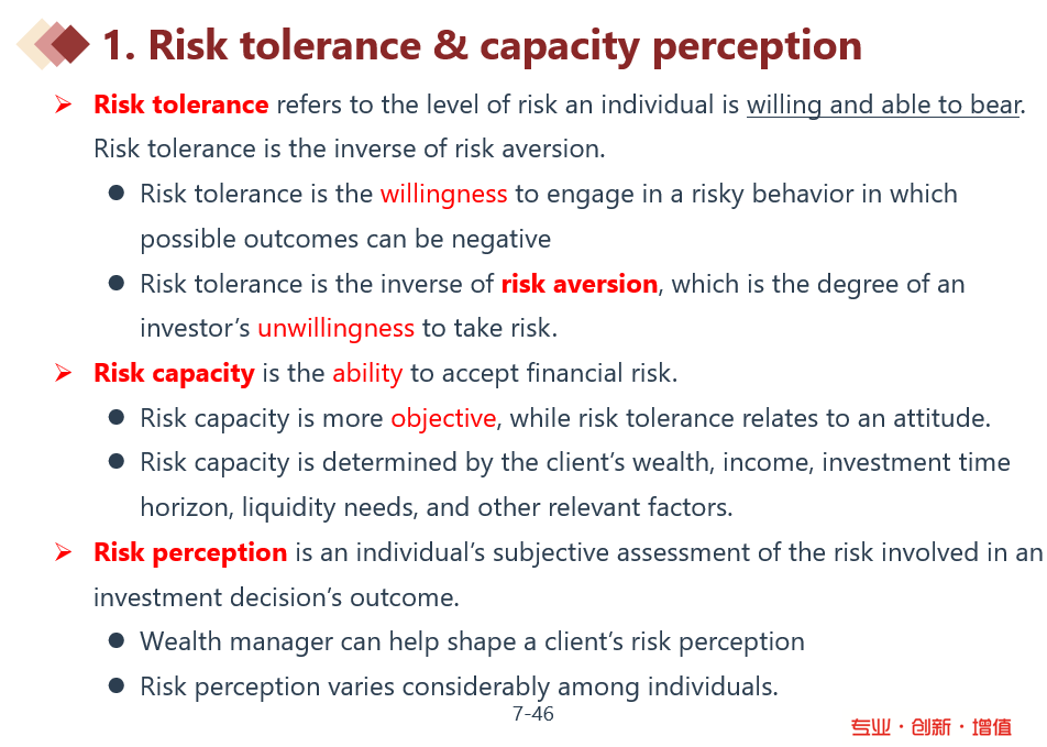 Risk tolerance不适合willingness和ability有关吗?case中的投资者有能力但是投资风格保守,那么经过投资经理的解释是有可能让投资者转变思维从而承受更多风险的。为什么不选A?
