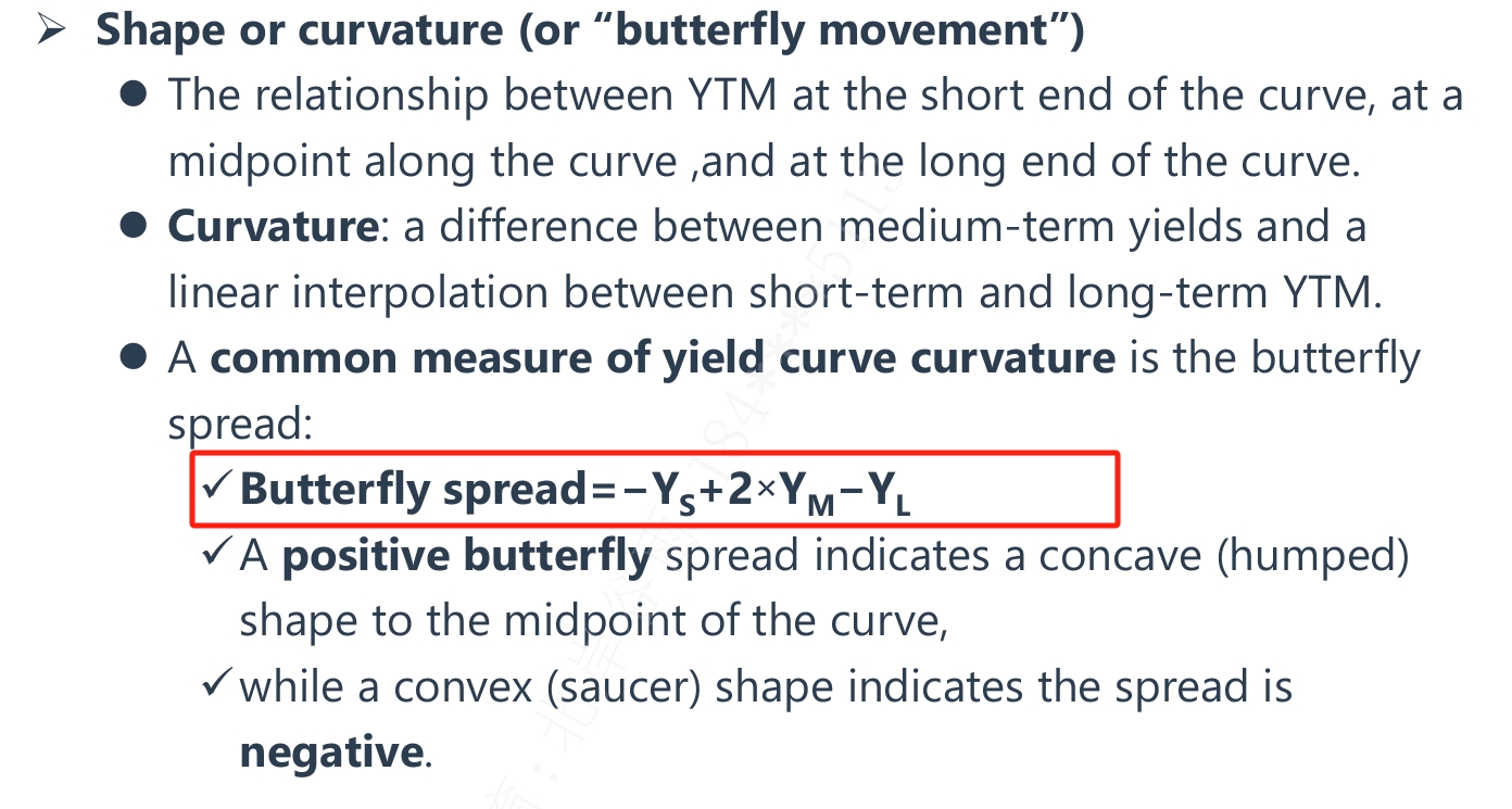 同学你好,butterfly就是收益率曲线曲度变化(curvature)所形成的一种图像。