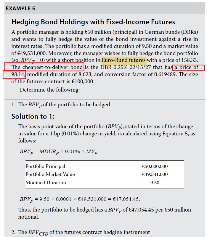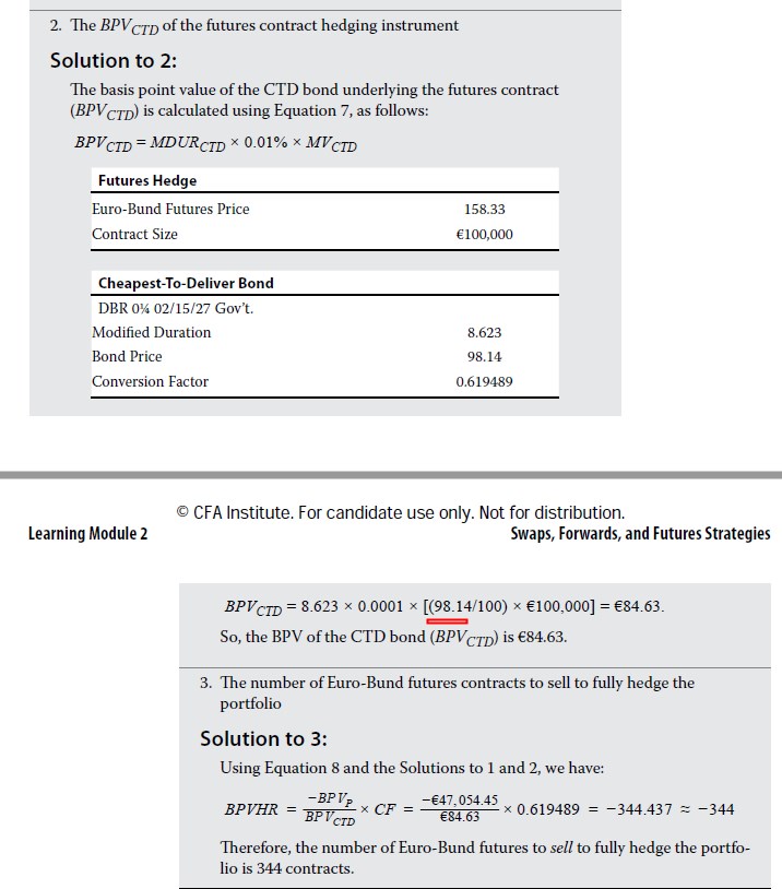 不过我们可以发现,98.14是CTD的价格,和,Euro-bond futures的价格是158.33,使用转换因子可以联系起来:98.14/0.619489=158.4208921≈题目给的158.33(题目保留了2位小数,具有误差)