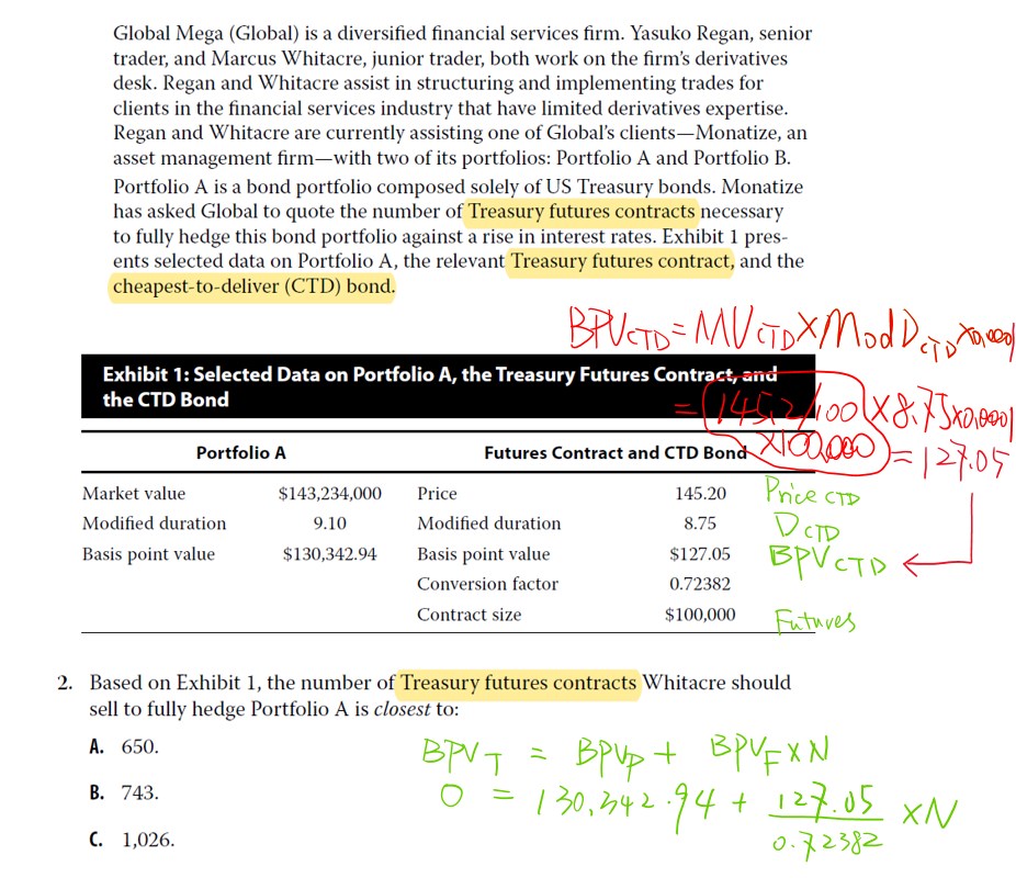 从“Global Mega”这个原版书课后题(截图1),同样在经典题专项(截图2)可以找到,它的表述是将Futures Contract 和CTD Bond的信息混在了一起,截图1计算过程验证了,exhibit 1中的所有数据都属于CTD而不是Treasury Futures Contract