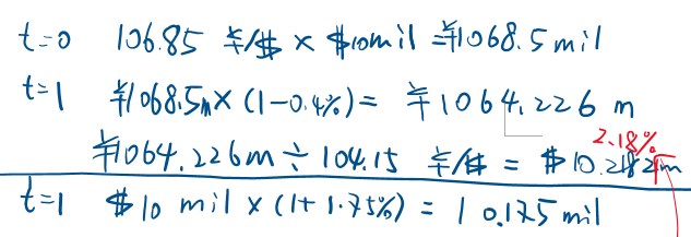 1.卖出美国债券,转而投资日元债券,投资到期货换成美元,可以获得10.2182mil美元