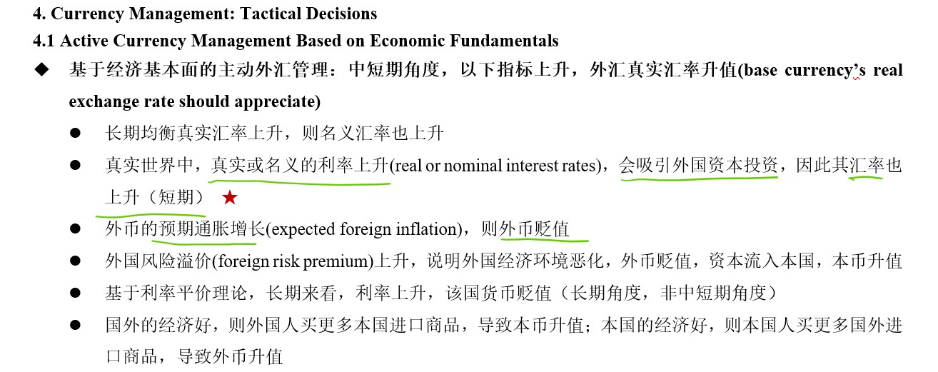 另外,外币的预期通胀增长(expected foreign inflation),美元如果通胀增长,则外币贬值,美元贬值