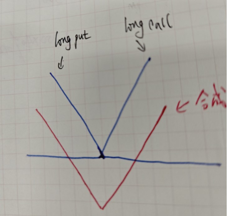 这里实际的V型曲线应该最低点更低吧,是两个期权费用损失?