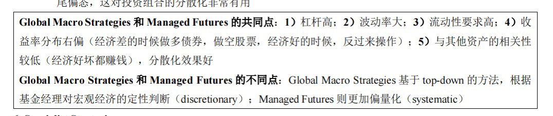 同学,你好,大多数global macro strategy会选择使用杠杠来放大收益,这是实际观测到的现象,没有太多原因哈。两者的特征和区别详见下图。