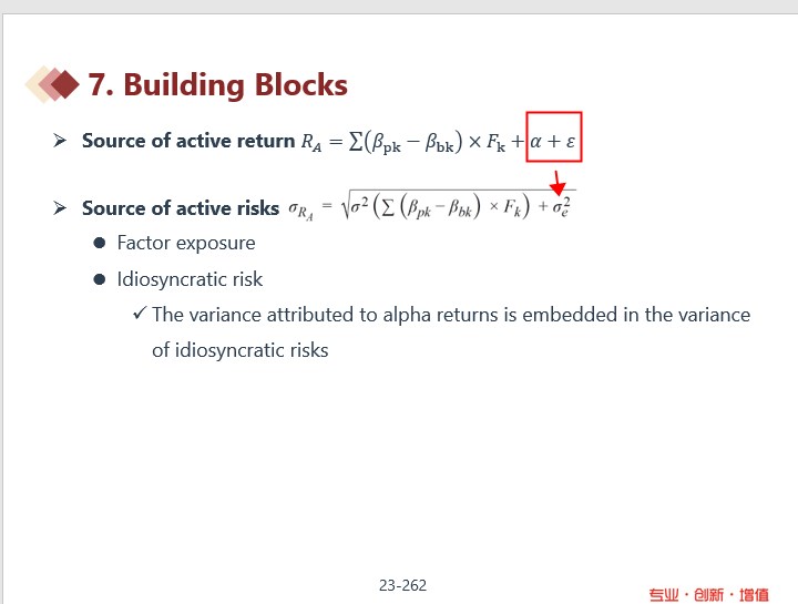 然后active risk中的第二部分Idiosyncratic risk,这个是alpha和ε带来的风险(截图红框)。