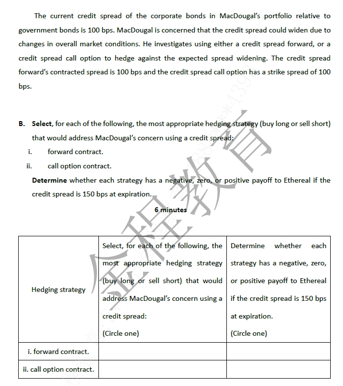 已知现在MacDougal的投资组合的Credit spread是100bps,题目假设到期时间点credit spread将变成150 bps