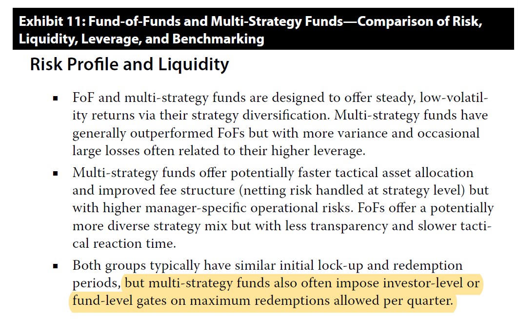 multi-strategy fund 和 FOF的赎回政策有什么区别?