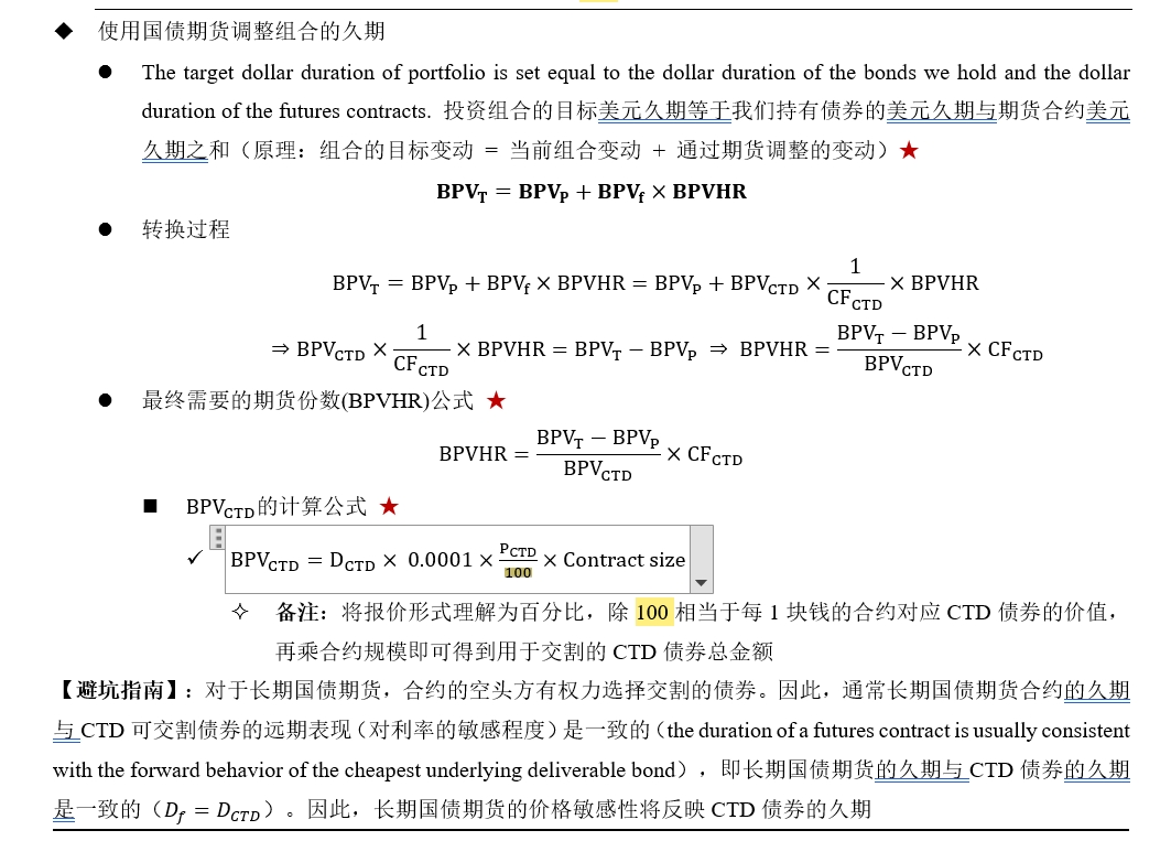 在hedge时,具体是使用国债期货调整组合的久期时,如果使用futures算份数BPVHR时,需要求BPV(CTD),将CTD债券的价格除以100,然后乘以标准国债期货合约大小contract size