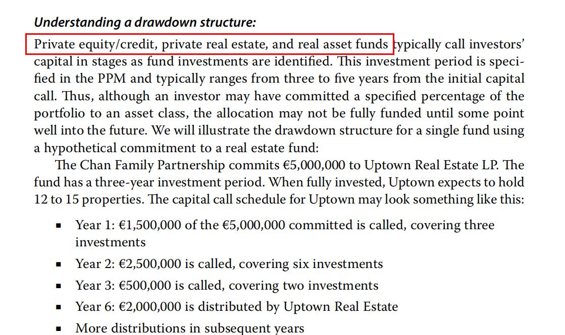 这里的10%是指private real estate 的配置权重。本题考查了drawn structure,需要计算call capital,因此要算上private real estate ,见原版书截图。