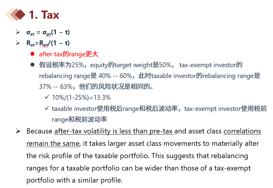 同学你好,tax的确是和range成正比,这和题目中是一样的。课税账户的range是要比免税账户更宽的,这也印证了tax是和range成正比的。课税账户的波动率小于免税账户,而波动率的下降是会使得range变宽的,具体可以参考下方总结。