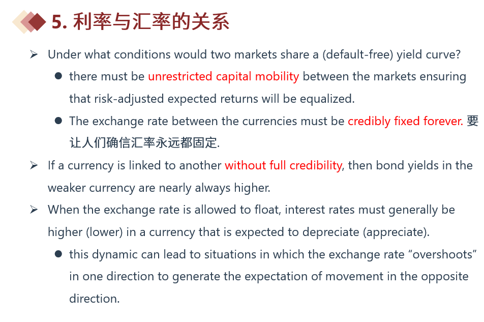 同学你好,这里可以参照直播课上的总结,这里有一个天下大同的思想,也就是在各国投资债券的收益率是一样的,这样才能确保达到均衡。当固定汇率会被打破,则货币预期贬值的国家,其债券收益率会提升,这样才能确保各国的投资收益率是一样的,达到均衡。