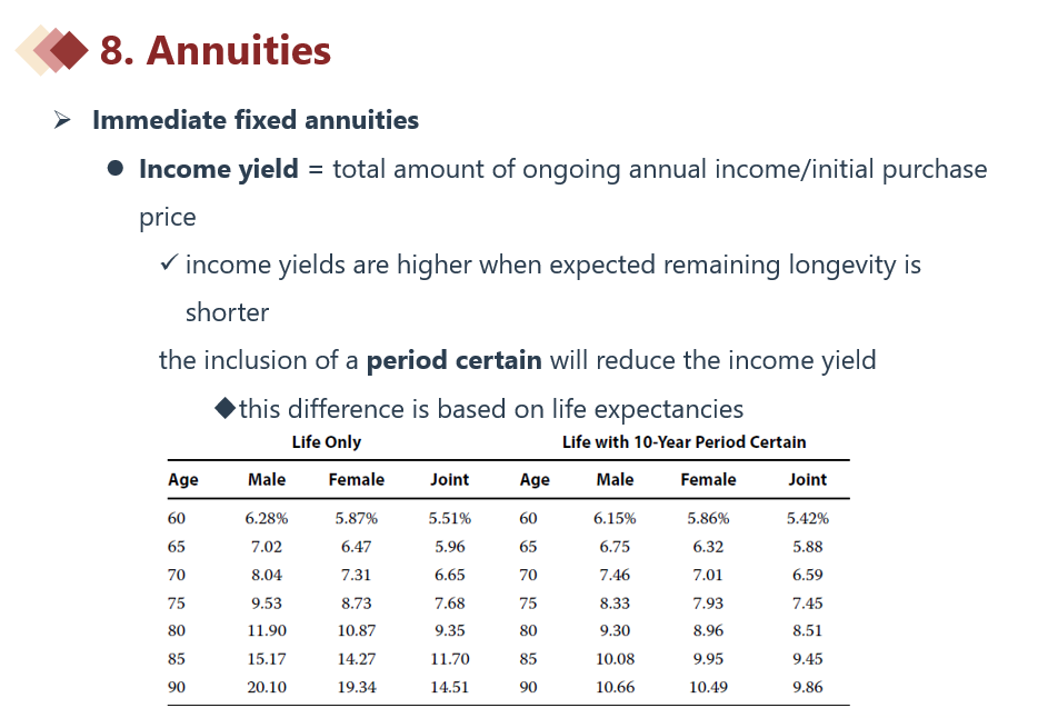 可以参考下方讲义截图,能看出当年纪越大时,income yield越低