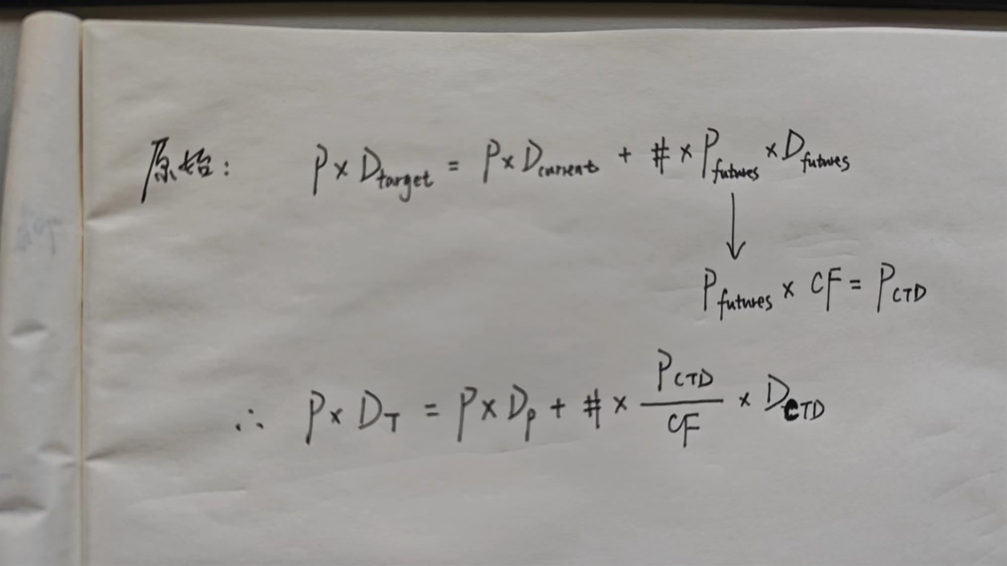 这里是因为我们的加减duration是根据标准化合约,所以要还原成标准债权,除以CF,这里有个隐含假设是ctd和标准债券的duration相等。