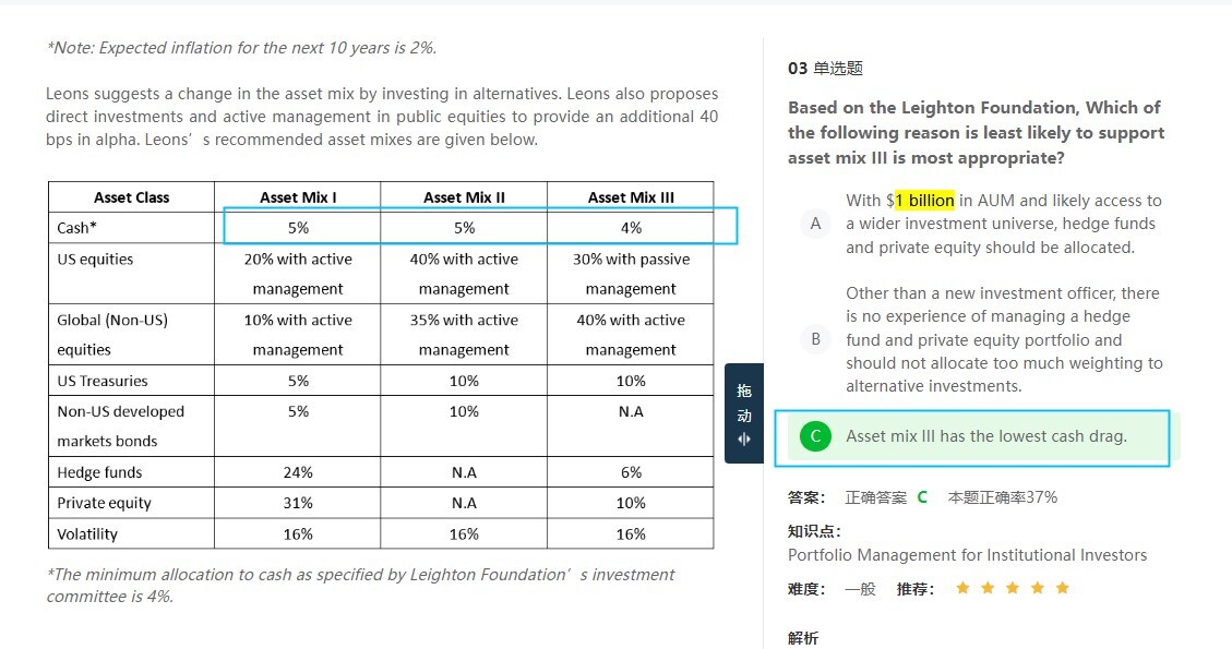 因为asset mix I , II , III的cash占比分别是5%, 5%, 4%,其中III只是低了1%,属于微小差距。